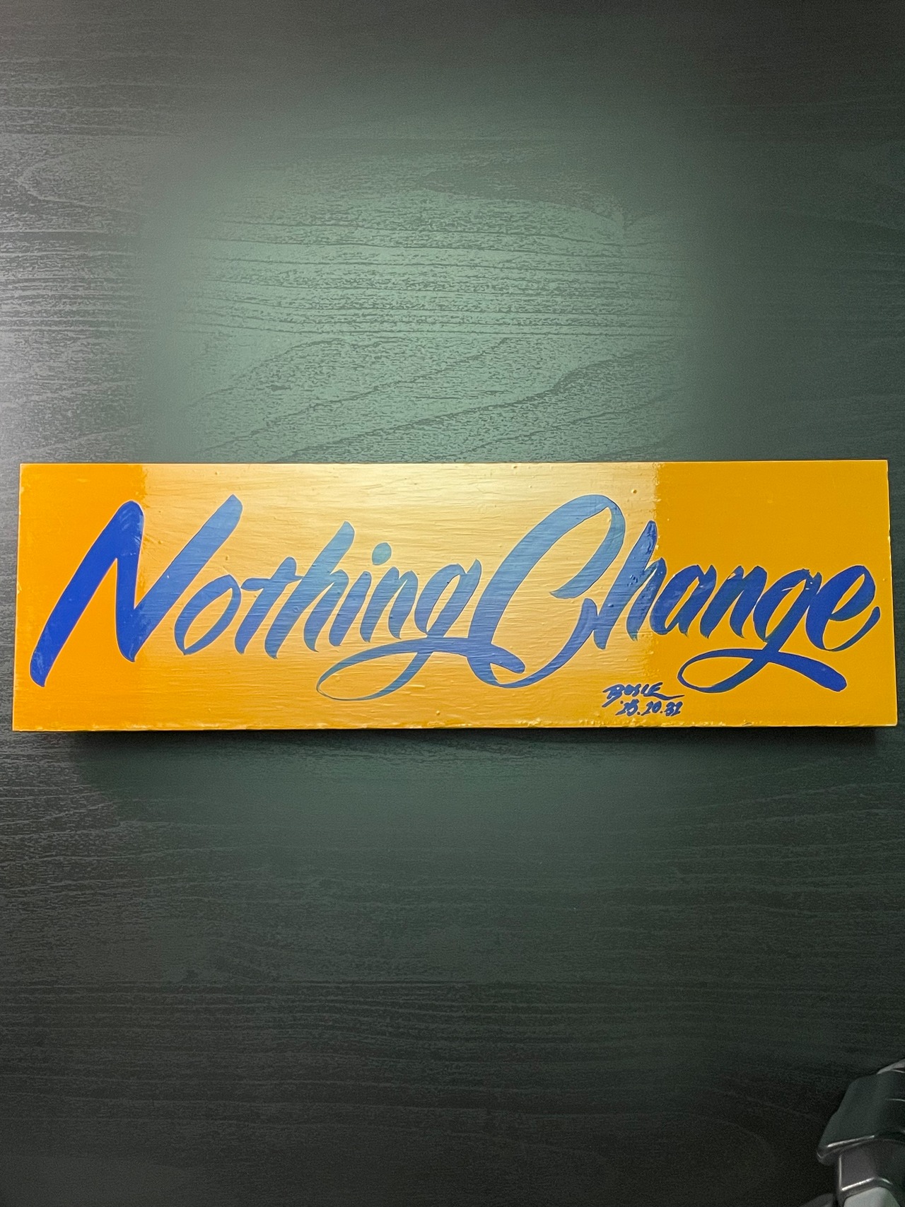 深いブルーのレタリングで描かれた「Nothing Change」。